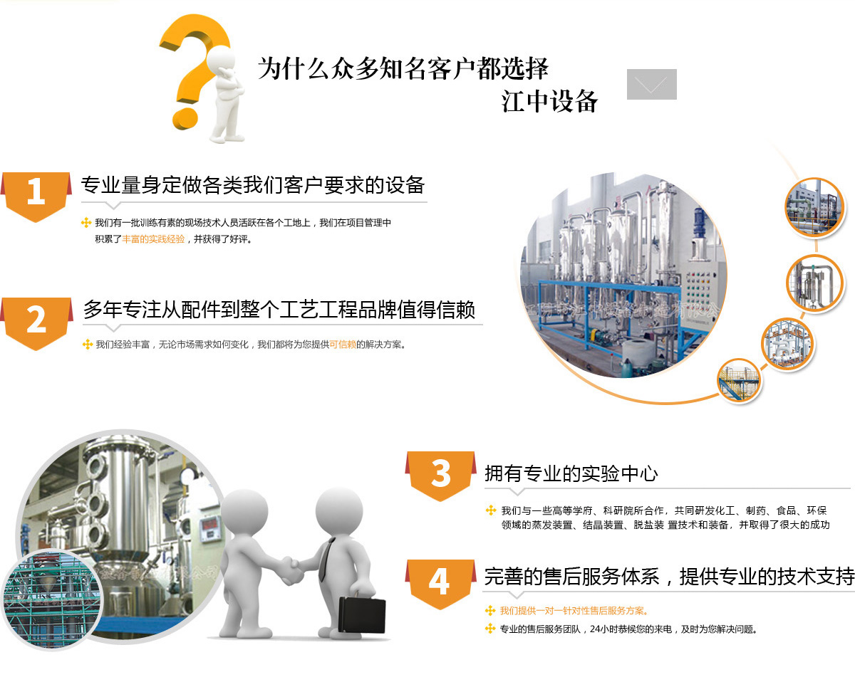 江陰市江中設(shè)備制造有限公司是一家專業(yè)從事蒸發(fā)、濃縮、提取、污水處理等設(shè)備的廠家。廣泛應(yīng)用于制藥、化工、食品、農(nóng)副產(chǎn)品深加 冶金、電子等多個(gè)領(lǐng)域。產(chǎn)品遍及全國(guó)三十余個(gè)省、市、區(qū),并遠(yuǎn)銷歐美及東南亞一些國(guó)家和地區(qū)。公司實(shí)力雄厚,匯聚了一批高層次、高素質(zhì) 的專業(yè)人才,一直致力于產(chǎn)品的開(kāi)發(fā)、生產(chǎn)和管理,并十分注重科技創(chuàng)新,所生產(chǎn)的設(shè)備受到用戶的青睞。